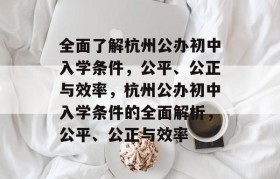 全面了解杭州公办初中入学条件,公平、公正与效率,杭州公办初中入学条件的全面解析,公平、公正与效率