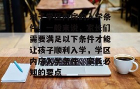 对于学区内房的入学条件,一般来说,家长们需要满足以下条件才能让孩子顺利入学,学区内房入学条件,家长必知的要点