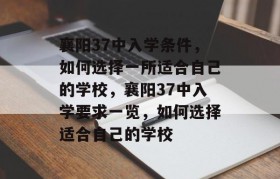 在中国的教育体系中,襄阳37中的入学条件是最受学生和家长关注的问题之一,许多家长和学生在考虑高中学校...