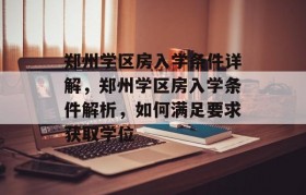 郑州学区房入学条件详解,郑州学区房入学条件解析,如何满足要求获取学位