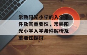 常熟阳光小学的入学条件及其重要性,常熟阳光小学入学条件解析及重要性探讨