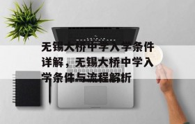 本篇文章将详细解析无锡大桥中学的入学条件,本文将对学校的招生对象、报名时间和方式进行详细介绍;我们将...