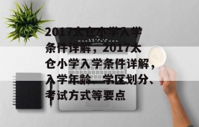 2017太仓小学入学条件详解,2017太仓小学入学条件详解,入学年龄、学区划分、考试方式等要点