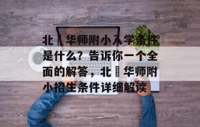 北滘华师附小入学条件是什么?告诉你一个全面的解答,北滘华师附小招生条件详细解读