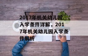 2017年机关幼儿园入学条件详解,2017年机关幼儿园入学条件解析