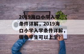 2019海口小学入学条件详解,2019海口小学入学条件详解,哪些学生可以上学?