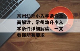 常州幼升小入学条件全面解读,常州幼升小入学条件详细解读,一文看懂所有要求
