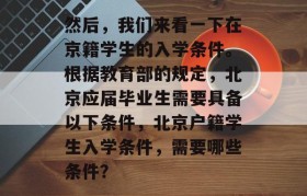 然后,我们来看一下在京籍学生的入学条件。根据教育部的规定,北京应届毕业生需要具备以下条件,北京户籍学生入学条件,需要哪些条件?