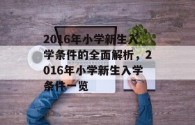 2016年小学新生入学条件的全面解析,2016年小学新生入学条件一览