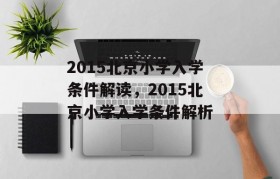 2015北京小学入学条件解读,2015北京小学入学条件解析