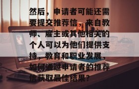 然后,申请者可能还需要提交推荐信,来自教师、雇主或其他相关的个人可以为他们提供支持,教育和职业发展,如何通过申请者的推荐信获取最佳结果?