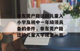 随着教育改革的推进和国家政策的调整,越来越多的城市开始实行学区划分制度,使得非东莞户籍适龄儿童在申请...
