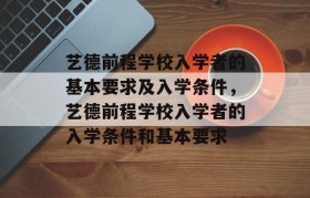 艺德前程学校入学者的基本要求及入学条件,艺德前程学校入学者的入学条件和基本要求