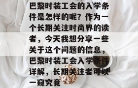 巴黎时装工会的入学条件是怎样的呢?作为一个长期关注时尚界的读者,今天我想分享一些关于这个问题的信息,巴黎时装工会入学条件详解,长期关注者可以一窥究竟