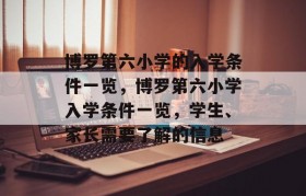 博罗第六小学的入学条件一览,博罗第六小学入学条件一览,学生、家长需要了解的信息