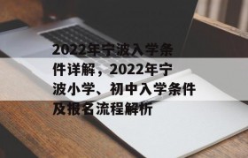 2022年宁波入学条件详解,2022年宁波小学、初中入学条件及报名流程解析