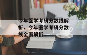 今年医学考研分数线解析:根据不同地区和院校的招生情况,医学考研分数线有所差异。分数线呈现上涨趋势,反...